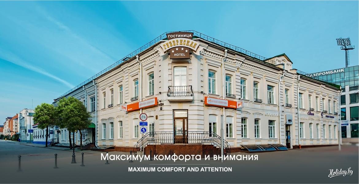 Гостиница «Губернская» расположена в самом центре Могилева на пешеходной улице Ленинская. Здание четырехзвездочного отеля является частью архитектурного достояния Могилева. К услугам гостей номера различной комфортности, соответствующие европейскому стандарту. На данный момент гостиница «Губернская» является единственной в Могилеве и области, имеющей категорию четыре звезды.