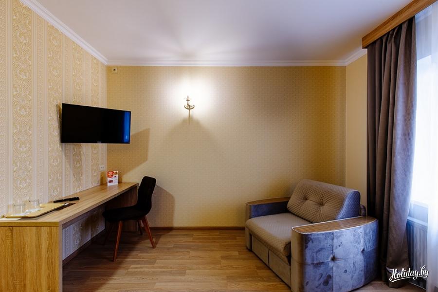 Отель, в котором работают очень отзывчивые и добрые люди. За все время проживания (20 дней) очень рад мелкими приятностями и очень приятному ненавязчивому вниманию администрации. Было много компромиссов в нашу сторону. Есть все возможности провести хорошо вечер на территории самого отеля, если есть компания. Вкусные завтраки с очень старательными официантами. Из минусов только расположение на краю Слуцка, но все это компенсируется тем, что все клубы и кафе находятся через дорогу в 20 метрах.
