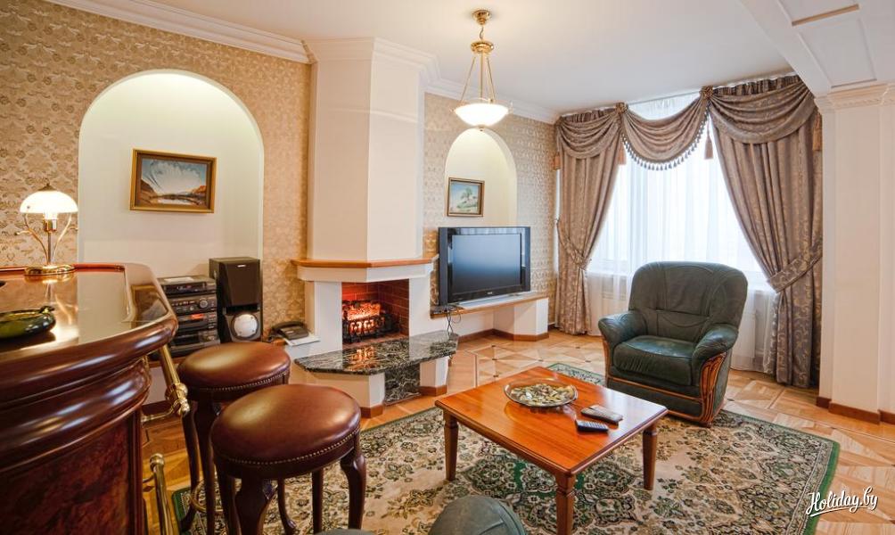 Отель в Минске состоит из смежных номеров. В каждом из них работает бесплатный Wi-Fi, все они прекрасно оборудованы: новая мебель, паркетные полы. В номерах есть телевизоры, телефоны, фены, чайники. Некоторые снабжены мини-барами и сейфами. Ванные и душевые располагаются в номере, дополнительно имеются гардеробные. По желанию гостя можно поставить дополнительную детскую кроватку. Есть люкс для новобрачных. С балкона можно увидеть живописный центр Минска.