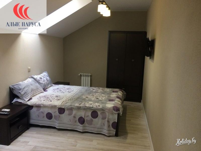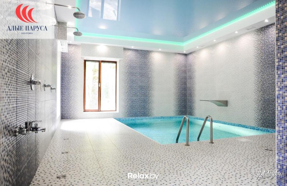База отдыха «Алые паруса» расположена в Гомельской области, 25 км отделяют ее от Гомеля и 350 — от Минска. Дом рассчитан на 14 человек и оборудован необходимыми удобствами. Здесь предусмотрено две просторные спальни с телевизором, караоке, кондиционером, мансардными окнами, санузлами. В гостиной оборудован мягкий диван, а также панорамные окна и французский балкон. База отдыха оснащена русской баней с бассейном 5,5x4,5. В бассейне также есть панорамные окна с живописным видом на лес, современная система фильтрации воды и вентиляции воздуха для максимального комфорта отдыхающих. Простыни, полотенца, халаты, тапочки, подстилки предоставляются бесплатно.