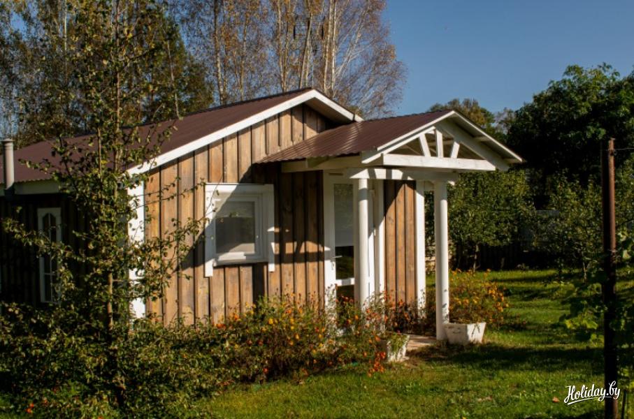 Комфортный дом с двумя спальнями с двуспальными кроватями на 6 гостей, диваном, кухонной зоной, террасой, барбекю зоной, баней с видом на территорию и хвойный лес.