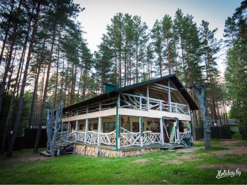 • гостевой дом – уединённо расположенный двухэтажный коттедж с оригинальным дизайнерским оформлением. На первом этаже имеет собственную мангальную зону, баню, джакузи на летней террасе с видом на сосновый лес, а также просторную кухню-гостиную с камином. На втором этаже расположены 4 спальни и дополнительный санузел. Всего в доме 9 спальных мест.