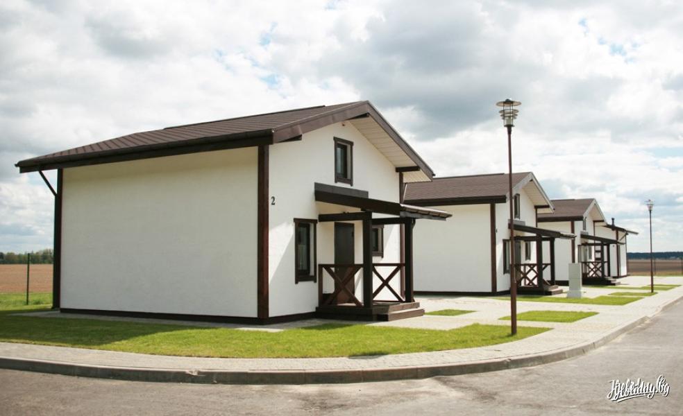 В загородном комплексе под Минском 12 отдельно стоящих домиков, 8 из них одноэтажные и 4 двухэтажные. В одноэтажном могут остановиться 2 человека (третье спальное место возможно организовать дополнительно). Он представляет собой комнату-студию, где есть 2 зоны: спальная и зона отдыха. Зоны отделены угловым диваном, который раскладывается и служит при необходимости дополнительным спальным местом.