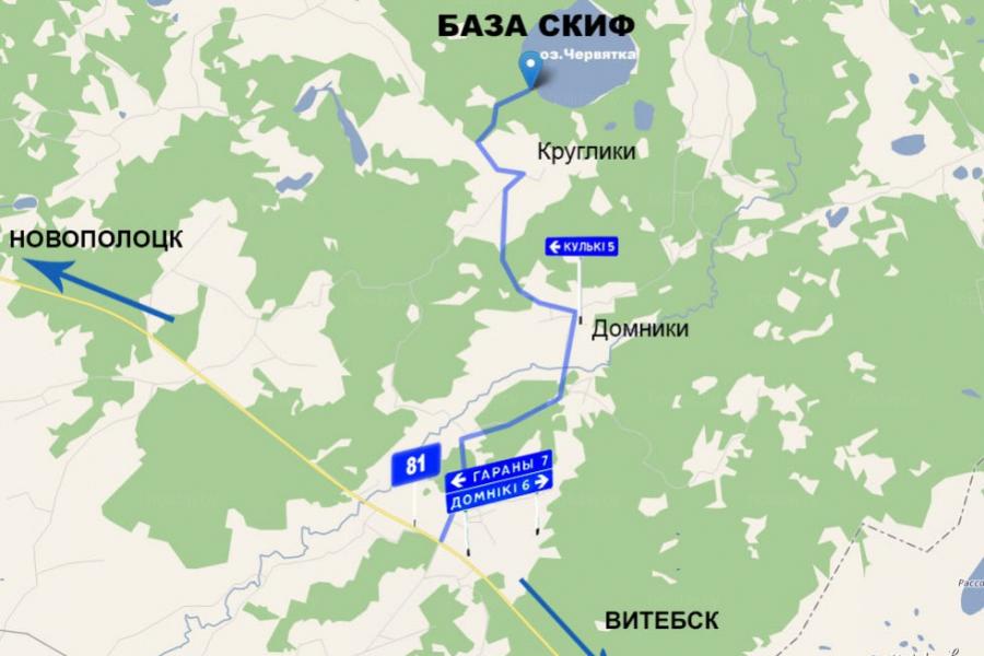 База охотхозяйства «Скиф» расположена на берегу озера Червятка. Расстояние от Минска - 240 км, от Витебска 90 км.