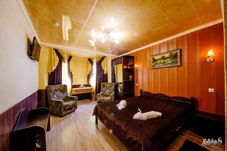Это современный комплекс, рассчитанный как на предоставление туристам спокойного отдыха и ночлега, так и на организацию праздничных и деловых мероприятий. Гостиница комплекса располагает уютными номерами класса «Эконом» и «Стандарт». Каждый номер отличается дизайнерским оформлением, но при этом их стоимость доступна любому путешественнику. Комнаты гостиницы оснащены удобными кроватями, письменным столом, шкафом, есть бесплатный Wi-Fi. В номерах класса «Стандарт» санузел расположен в комнате, что не предусмотрено для номеров класса «Эконом», где санузел является общим и расположен на этаже.