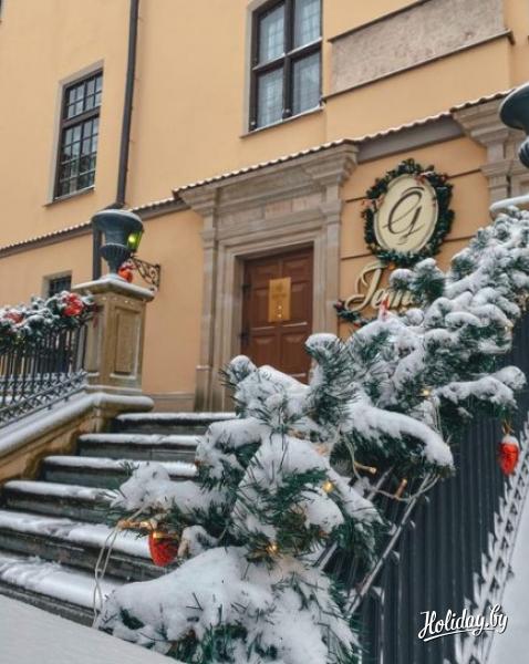В заведении предлагаются блюда европейской и белорусской национальной кухни. Меню ресторана меняется каждый сезон и предлагает гостям попробовать кухню разных стран.