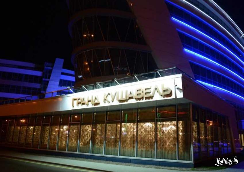 Ресторан "Гранд Кушавель" расположен на проспекте Победителей. Это место с уютной атмосферой и вкусной кухней. Заведение позиционирует себя как гастрономическое место с нетривиальными авторскими блюдами. Здесь подают карпаччо из тигровой креветки и роллы без риса. В заведении имеется обеденное меню.