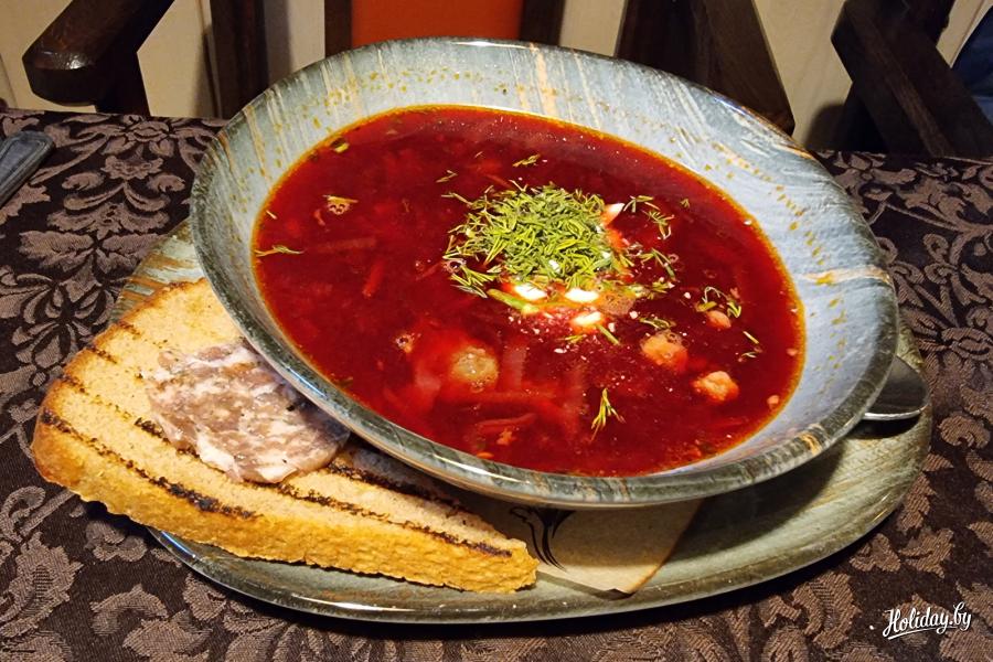В заведении предлагаются блюда белорусской кухни с применением старинных белорусских рецептов. Некоторые рецепты сохранились еще со времен Радзивиллов.
