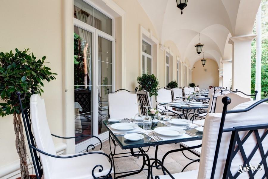 Открытая галерея, где проходят завтраки, обеды и ужины в теплое время года.
