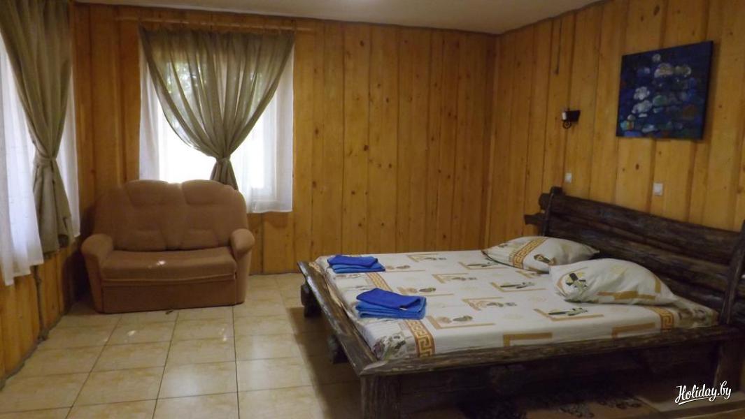 Для проживания предусмотрены деревянные домики с отоплением и кондиционером. Здесь есть нужная мебель, техника, санузлы. На территории для гостей установлены беседки и мангалы.