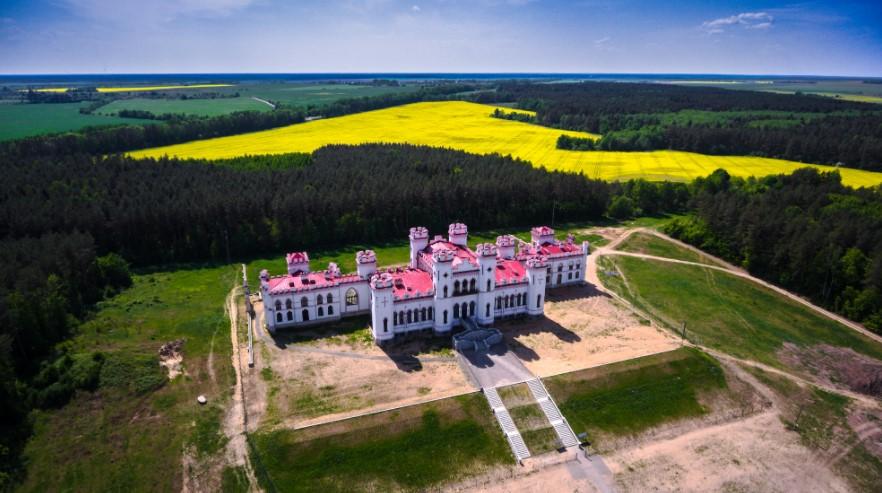 Уникальный памятник неоготической архитектуры XIX века стоит на возвышенности — с нее открываются завораживающие панорамы окрестностей. В настоящее время дворец находится на реставрации.