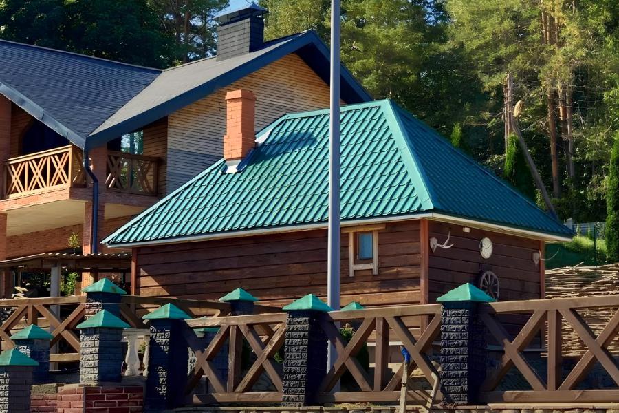 Ухоженная и красивая территория. Деревянный домик на берегу заводи, парковка рядом с домом. Возле домика свой мангал (берите с собой уголь) и столик на улице, за которым приятно было завтракать и ужинать с видом на воду и птиц. Кстати, птиц на территории очень много, от свободно живущих на водоёме гусей, уток и лебедей, до попугаев, фазанов, пушистых китайских кур и прочих экзотических экземпляров в вольерах.