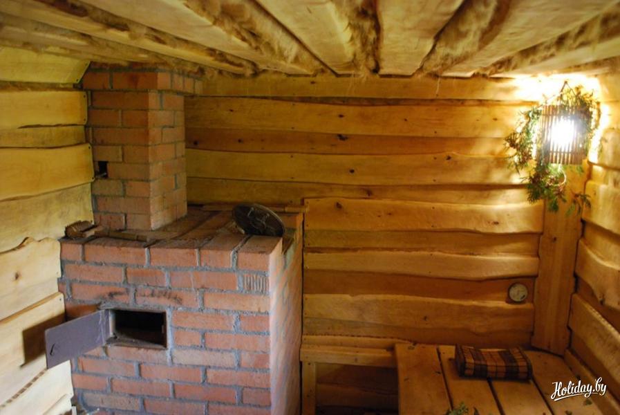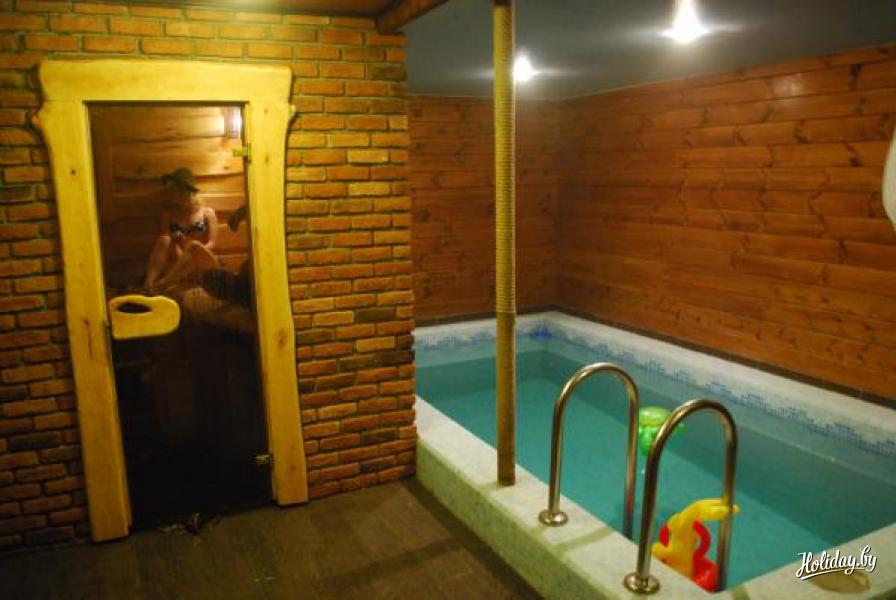 После бани вы сможете окунуться в бассейн с гидропушкой, облиться из ведра, а также выбежать на улицу к пруду.
