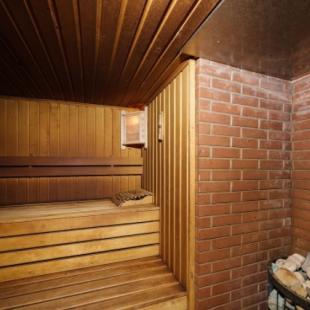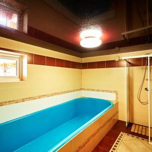 Баня на дровах в ВИП-коттедже «Дубрава» недалеко от Минска вмещает компанию до 20 гостей. Для отдыхающих предусмотрена просторная парилка и душевая кабина. Здесь же можно и освежиться – поплавать в лазурном бассейне.