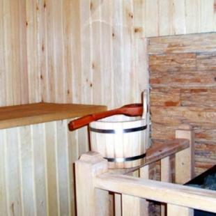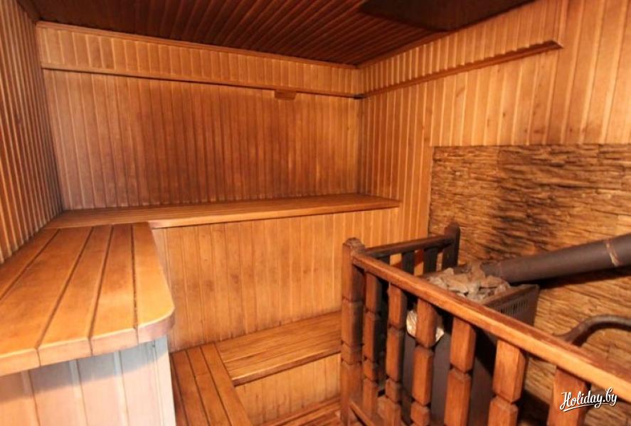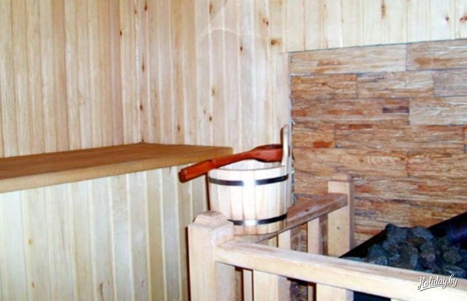 Есть предбанник, парная на дровах, душ и комната отдыха.