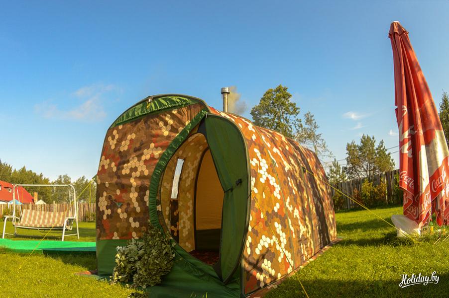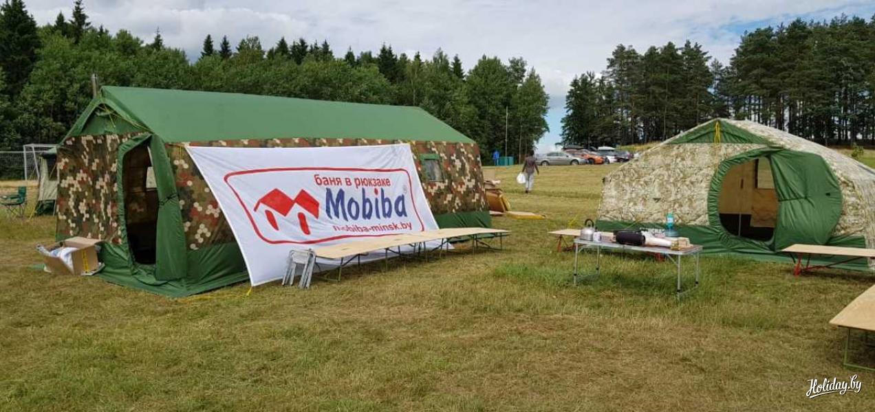 Мобильная баня «Мобиба» может быть также использована как обычная палатка. Очень комфортный вариант для выезда на природу семьей или компанией друзей. Палатку можно разделить на несколько отсеков, в одном - принимать банные процедуры, во втором - переодеваться, в третьем - отдыхать. Различные модификации банных модулей, печей, оборудования и аксессуаров сделают ваш отдых на природе поистине незабываемым. Банное оборудование доступно как в аренду, так и для продажи.