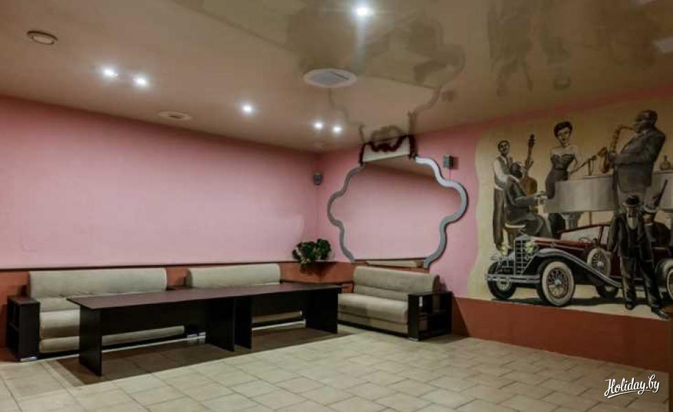 В комната отдыха вы сможете накрыть стол (разрешено приносить свою еду). В комнате имеется телевизор, камин, большой удобный диван и стол.