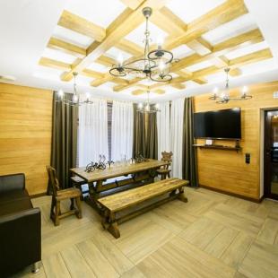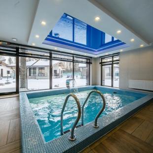 Сауна физкультурно-оздоровительного комплекса «Вячоркi» под Минском оснащена бассейном с подводным массажем и подсветкой, над которым простирается завораживающее звездное небо, окутанное световой иллюминацией; противотечением и водопадом «Кобра». Сауна «Вячоркi» станет для вас идеальным местом для релаксации: тут есть комната отдыха с камином, удобные диваны и уютное тёплое освещение, качественная акустическая и видео система, которая подключена к спутниковому телевидению и интернету. При желании весёлого и энергичного отдыха, комната может превратиться в диско-зал с банкетным столом до 10 человек. Также комната оборудована мини-кухней с холодильником, СВЧ-печью, посудой и кухонными принадлежностями.