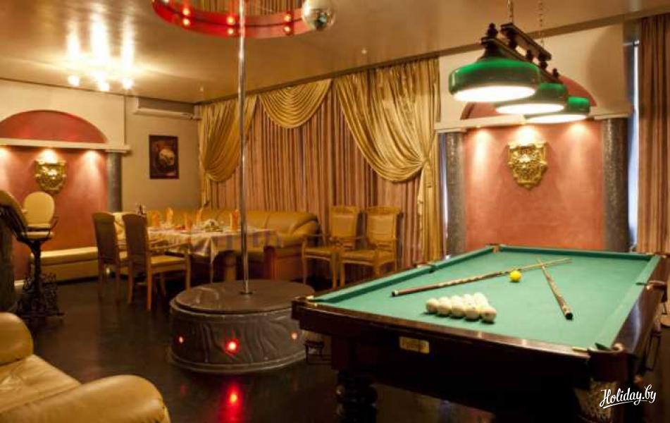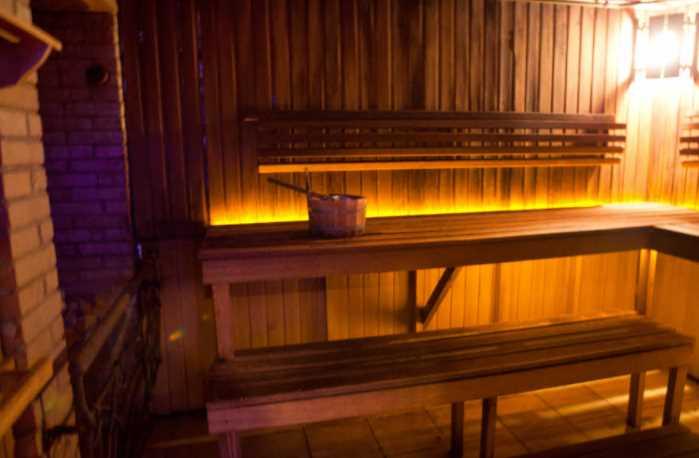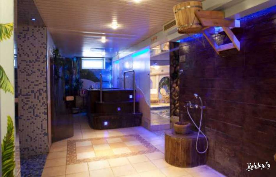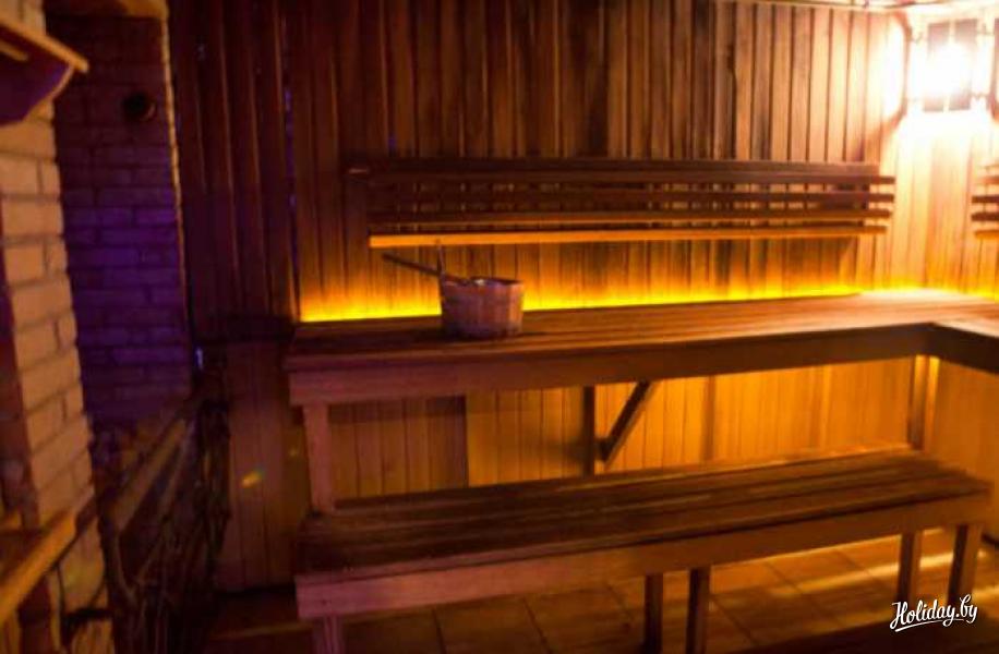 Здесь имеется финская парилка на 10 персон, каминный и банкетные залы, а также детская комната. Из парной можно окунуться в бассейн с водопадом и гидропушкой, а также в купель. Имеется также ведро для обливания. В комнатах отдыха есть аудио и видеоаппаратура, ТВ, бильярд.