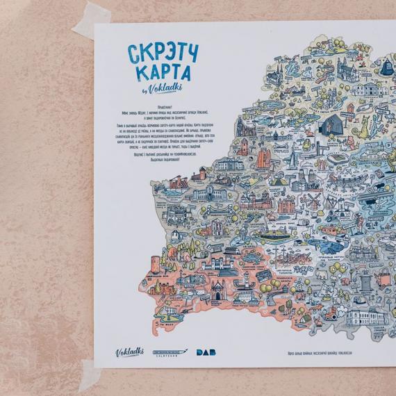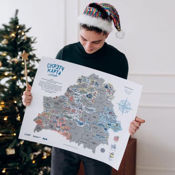 А еще совсем недавно у ребят появился шикарный подарок-сувенир для путешественников - скретч-карта Беларуси! Карта разделена не на области и районы, а на условные зоны с достопримечательностями.