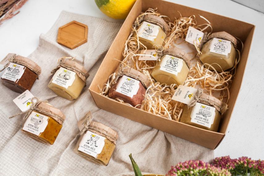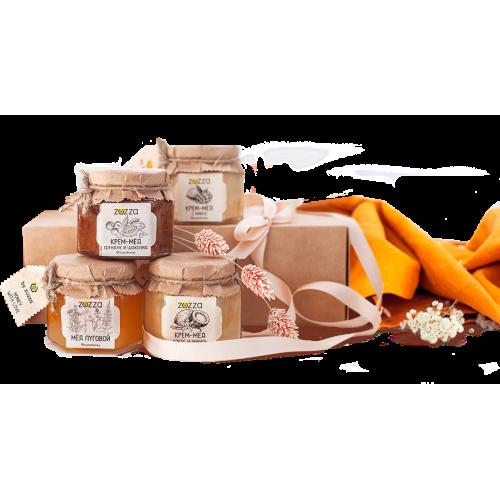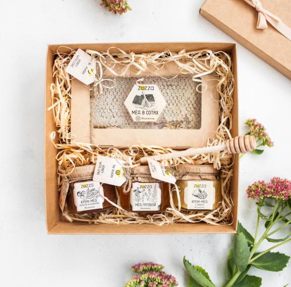 Также на сайте ZUZZA вы сможете заказать готовые подарочные наборы, в их состав кроме мёда входят свечи, кружки, медовые ложки.