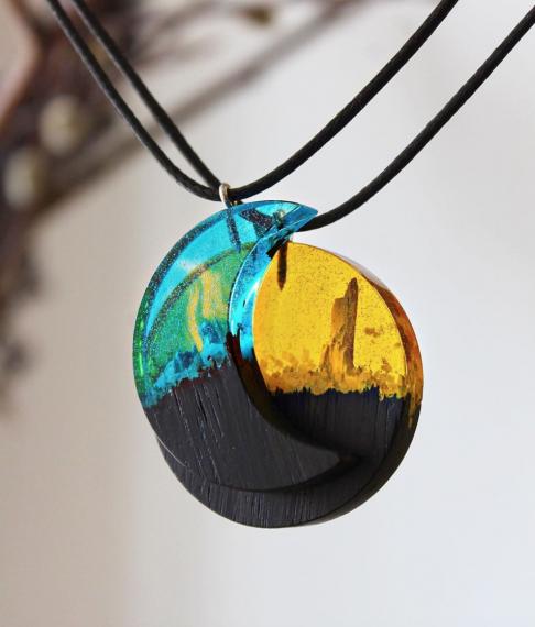 Трудно поверить, но создатели уже известного в Беларуси бренда SOVA - еще совсем молодая семья. Вероника и Женя живут в небольшом городе - Солигорске. Но в их изделиях можно увидеть целые галактики! В своих работах ребята идеально дополняют друг друга идеями и умениями. Может, в этом также и заключается смысл их украшений - в сочетании и дополнении, соединении дерева и смолы, в создании из разных материалов - единого и уникального изделия.