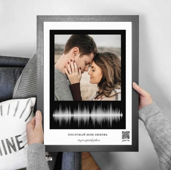 Еще одна необычная идея, которую воплощают дизайнеры, - картина голоса! На ней изображается звуковая волна, а с помощью QR-кода можно прослушать послание.