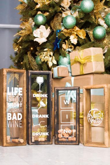 Приятный и тематический подарок для любителей вина - копилка для винных пробок. Дополненные веселыми надписями и принтами, они создают праздничную атмосферу и придают шарм любому, даже самому обычному вечеру. Выбор копилок большой, можно подобрать настенную или настольную копилку под любой интерьер. Также есть копилки для пивных пробок.