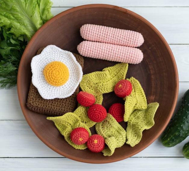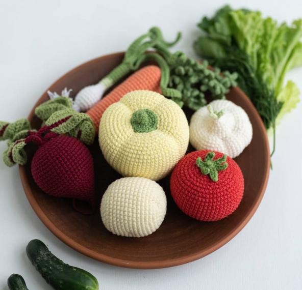 Какие же они аппетитные! Игрушки, связанные крючком для ваших малышей. Вся вязаная еда очень похожа на настоящую, чтобы ребенок правильно знакомился с продуктами, овощами и фруктами. Игрушки безопасны, шьются из качественных материалов. В качестве набивки используется гипоаллергенный наполнитель. Они просты в уходе, легко стираются. Игрушки имеют ребристую поверхность, что полезно для развития мелкой моторики.
