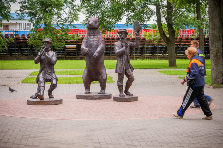 Дрессировочная академия Радзивиллов — это часть истории города. Сегодня на одной из центральных аллей парка установлена скульптурная композиция, посвященная данному периоду. Автором проекта выступил заслуженный деятель искусств, мастер Владимир Теребун. Идея создания памятника зародилась давно: изначально его планировали выполнить из дерева. Однако после того, как местные власти профинансировали проект, было решено изготовить композицию из чугуна. Сегодня памятник представляет собой скульптурную группу в виде веселых скоморохов с медведем, и пользуется большой популярностью у туристов.