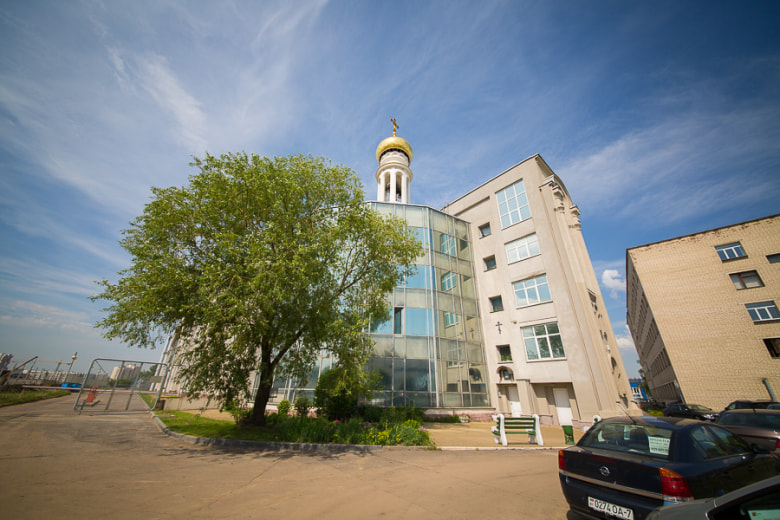 Пожалуй, данная церковь является самым необычным сооружением среди всех религиозных «новостроек», возведенных в течение девяностых годов в Минске. Безусловно, больше всего поражает оригинальная архитектура храма. Сочетание стеклянных фасадов и традиционной золотой маковки производит сильнейшее впечатление на жителей города. Первая мысль, возникающая при взгляде на здание: здесь наверняка обосновались протестанты, ведь это им свойственна любовь к модернистской архитектуре и отсутствию излишней декоративности. Но как этот вывод соотнести с позолоченным куполом и православной иконой, расположенной над входом в храм?