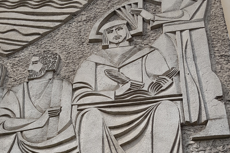 Монументальное панно «Наука» в Гродно – это декоративная композиция в стиле соцреализма, которая появилась в 1975 году на стене дома №19 по улице Ожешко. Тогда в здании располагался клуб юных техников. Советские архитекторы на месте бывшего заведения общепита создали огромное монументальное панно.
