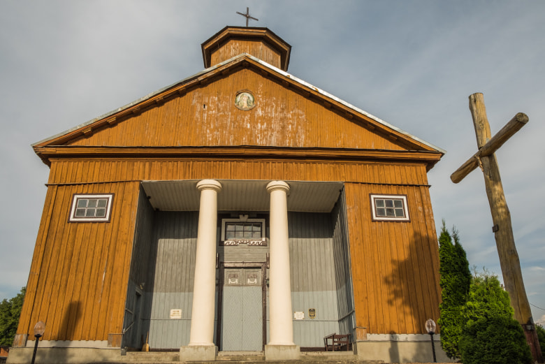 На месте костела Отыскания Святого Креста были другие храмы-предшественники. Первый из них был возведен еще в XV столетии, но был разрушен. В середине XVII века на его месте отстроили новый храм, который впоследствии сожгли во время очередной войны. Современный костел, который сохранился до наших дней – это уже третий, построенный на том месте в конце XVIII века, и большая редкость среди деревянных храмов. Имея более чем 200-летнюю историю, он сохранился практически в первоначальном виде.