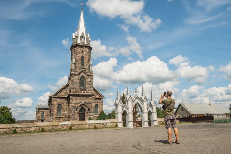 Средства на возведение храма выделил новый владелец городка Александр Вольский. Деньги собирали и прихожане. Проект храма разрабатывали специалисты из Франции, а строительными работами занимались работники из Польши и местные жители. Активно принимали участие в строительстве костёла и священники.