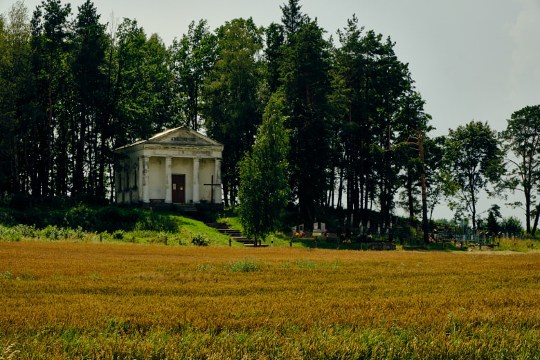 Часовня на кладбище построена в 1908 году владельцами поместья Лопушно - Раманом-Криштафом и его женой Марией из рода Судь Наркевичи-Йодки в память о их умершей дочке Терезе.