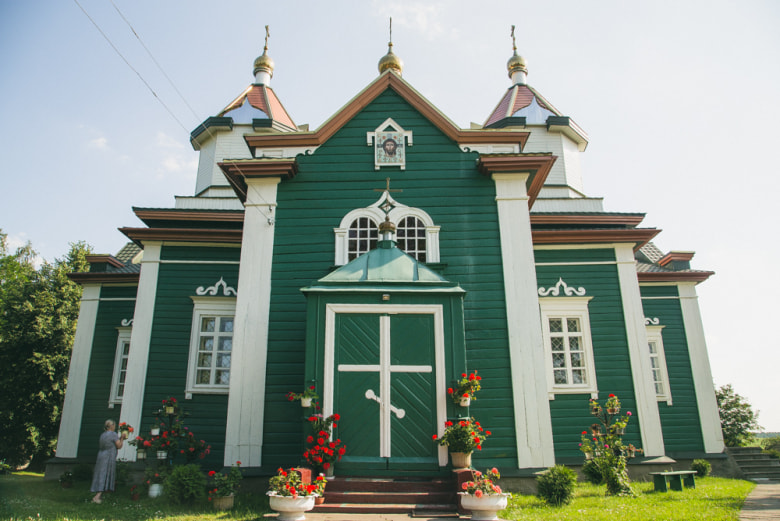 Церковь стоит на центральной площади деревни, огороженная забором с 3-пролетными арочными воротами и старыми посадками липы. Церковь была построена в 1859 году из дерева. Является памятником архитектуры ретроспективного-русского стиля. Относится к типу центричных крестово-купальных храмов, установленная на высоком каменном фундаменте.