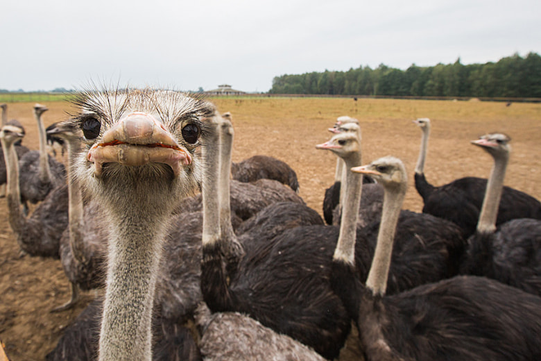 Страусиную ферму создали в 2003 году. Она была построена всего за два года на месте, где раньше был пустырь. На ферме разводят одну из самых больших птиц в мире – черного африканского страуса. Его высота в длину - 2,5 м, а вес -150 кг. Продолжительность жизни страуса - 70 лет, из которых 35-40 лет несет яйца. И хотя белорусский климат совсем не похож на африканский, страусы давно адаптировались к температуре, влажности воздуха этих мест и неплохо зимуют.