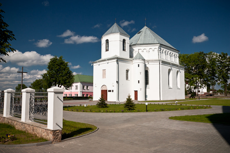 Одни говорят, что его строительство как костела в 1503-1505 гг спонсировал Юрий Иванович Зенович, другие источники сообщают, что он строился в 1553-1555 г. как кальвинский храм. Но самое реалистичное, что строение, которое дошло до наших дней, было возведено в 1606-1612 гг. Криштофом Зеновичем на месте старого деревянного кальвинского собора 1555 года. Об этом свидетельствует количество каменных кальвинских соборов, построенных в тот период, и характер постройки храма. Также это подчеркивает ксендз Ян Курчевский в своей публикации от 1907 года. Николай Богуслав, сын Кристофа Зеновича, принял католичество и в результате этого после его смерти в 1621 году его сестра Софья передала храм католикам. В 1655 г. войска царя Алексея Михайловича разрушили храм, но его очень быстро восстановили. В 1858 году во время реставрации художник Илапович из Галиции украсил внутренний интерьер храма фресками, построили ворота, ограждения. Куполоподобная башня с козырьком «получила» новые часы, а два крухлых сооружения воле главной башни, придают ему вид военного укрепления. В 1866 году костел быль переосвящен в церковь, затем снова получил статус костела (1921 г.). После закрытия в 1947 году в нем находились музей, магазин, выставочный зал. В подземелье храма находится усыпальница Зеновичей. Несмотря на то, что усыпальница еще полностью не исследована, но версию о подземных ходах до Крева и Вильнюса уже опровергли. Оборонительный католический костел был построен в стиле Ренессанс.
