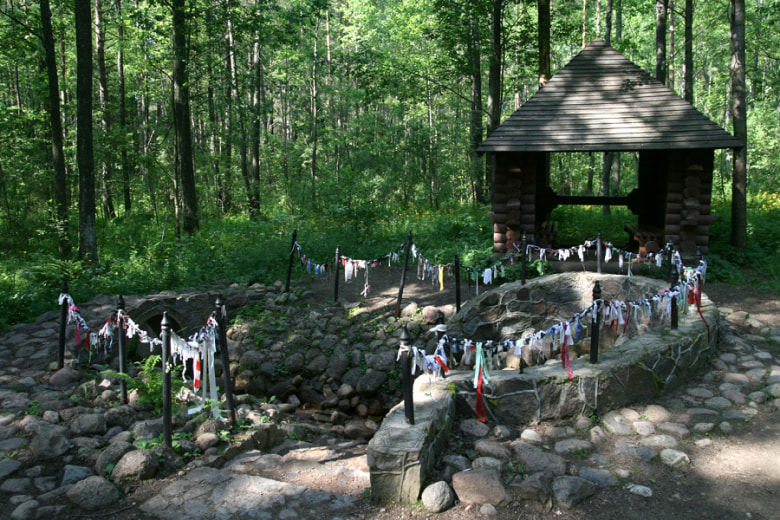 По старому преданию была у озера огромная ель, выделяющаяся среди других елей своим могучим видом и высотой. У корней чудо-дерева люди нашли источник и решили, что вода этого источника и наделила дерево силой. Наши предки стали набирать воду для себя, думая, что она обладает целебными свойствами. Считается, что изначально вода сохраняла свои целебные свойства очень долго. Чтобы отблагодарить источник за воду с лечебными свойствами, нужно было заплатить роднику. Но бывало, что монеты не у каждого находились, и тогда появилась традиция в этом случае повязывать рядом кусочек ткани. Эта традиция до сих пор существует, и в летнее время, когда родник особенно популярен для посещения, всё ограждение у родника украшено пестрыми «благодарностями».