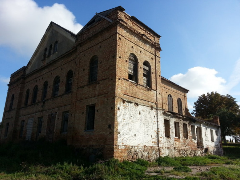 Еще одна отличительная черта синагог – внешняя сдержанность при шикарном внутреннем убранстве. Синагога в Индуре выполнена из светлого кирпича, без украшений на фасадах. Скорее всего, возводилась в стиле классицизма, учитывая пропорциональность, симметричность и время постройки. Есть хозяйственная и, видимо, учебная (школа) постройки рядом.