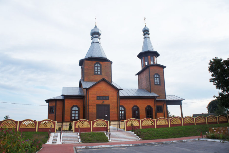 Храм – образец белорусского деревянного зодчества и является украшением деревни. В церкви хранится редкая икона Божией Матери «Достойно есть». Икона является точной копией иконы, находящейся в монастыре на Афоне. Название ей дано по первым строкам песнопения, с давних времен исполняемого перед ней. На иконе изображена Богородица с младенцем Иисусом на руках. При этом взгляды обоих устремлены на развернутый свиток в руках младенца со словами пророчества о Христе.