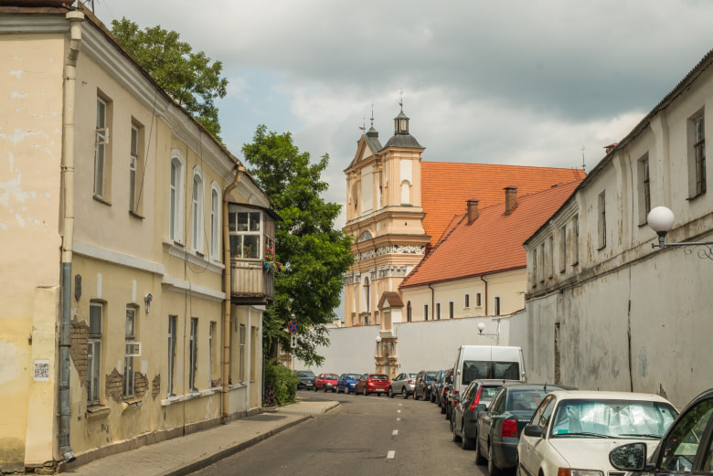 Архитектурным сокровищем в стиле барокко, воздвигнутый в начале XVII в., является Бригитский костел и монастырь. По плану построения костел очень интересен своим необычно вынесением здания на пересечение двух широких улиц в Гродно. Угловые башни и утончённые брамы стен монастыря делают комплекс художественно воспринимаемом на тесной территории. Архитектура отклонена от классики. Некоторые элементы необычно выполнены. Стиль барокко выражен слабо.