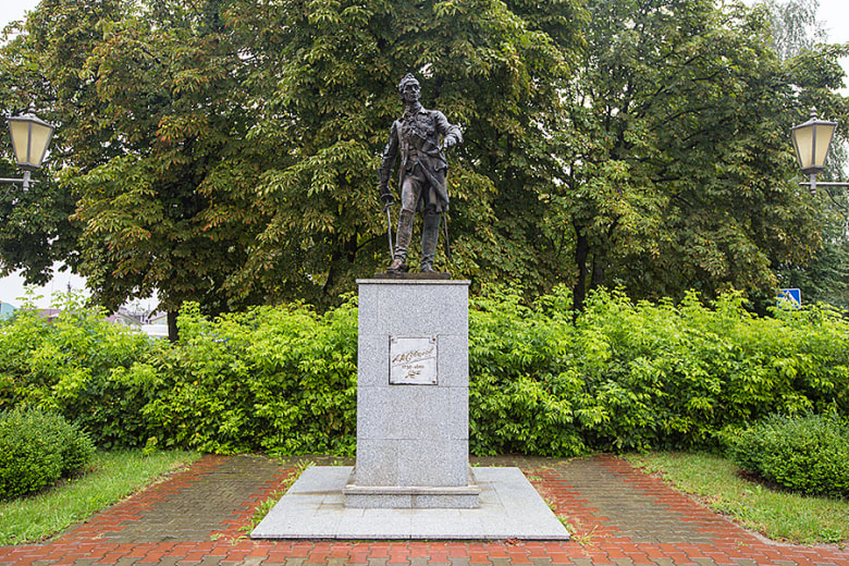 Памятник Александру Суворову в полный рост находится на развилке ул. Советской и ул. Пушкина. Его автор — скульптор Виктор Чеботарев. Суворов стоит на высоком постаменте лицом на запад, упираясь одной рукой на шпагу, а другой указывая вперед. На постаменте указаны годы жизни подководца.