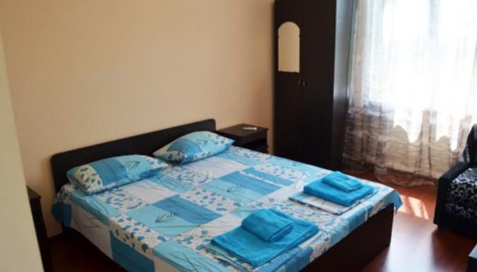 Двухспальная кровать, платяной шкаф, журнальный столик, кресло (раскладывается дополнительное место), санузел, душ, кондиционер, телевизор, постельное белье, полотенца.