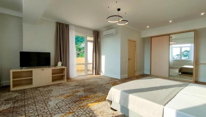 Бесплатные туалетно-косметические принадлежности, Халат, Туалет, Ванна или душ, Полотенца, Тапочки, Фен, Туалетная бумага, Белье, Шкаф или гардероб, Кофеварка/чайник, Кондиционер, Сейф, Звукоизоляция, Отдельный вход, Москитная сетка, Гладильные принадлежности, Утюг, Отопление, Ковровое покрытие, Холодильник, Электрический чайник, Чистящие средства, Рабочий стол, Гостиный уголок, Телевизор, Телевизор с плоским экраном, Кабельные каналы, Терраса, Вешалка для одежды