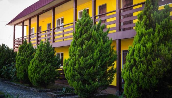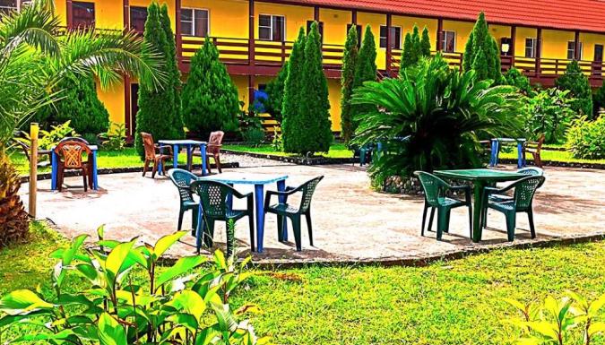 Абхазский дворик – современная гостиница, расположенная в Цандрипше, в 3-4 минутах от моря (200-300 метров). Пляж песчано-галечный, очень просторный и не многолюдный. На территории есть открытый БАССЕЙН, лаунж-зона с шезлонгами и большой зеленый дворик с садом и зоной барбекю. В распоряжении гостей бар, столовая (заказное меню) и караоке. Это отличное место для семейного отдыха, территория огороженная и ухоженная. Бесплатный Wi-Fi.