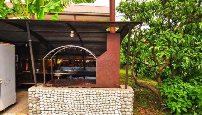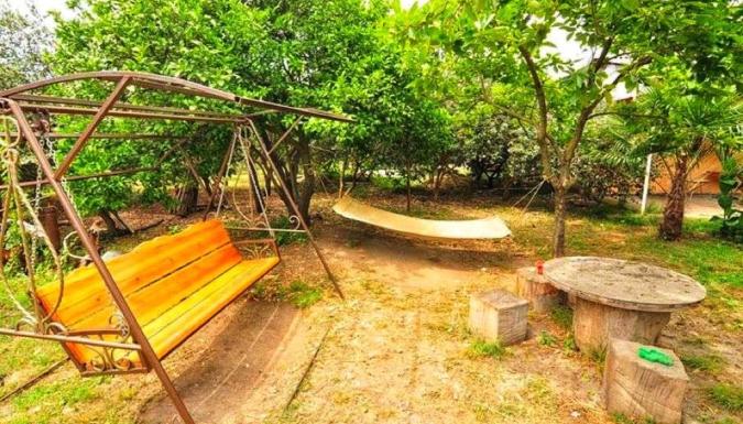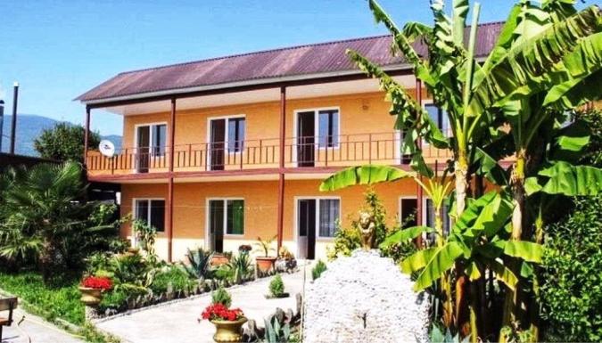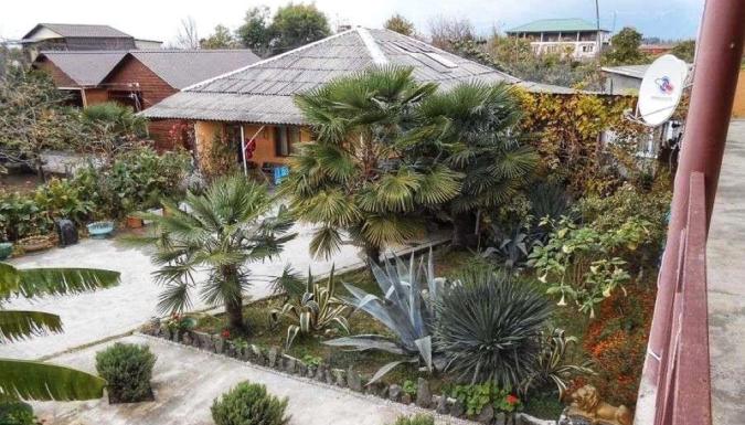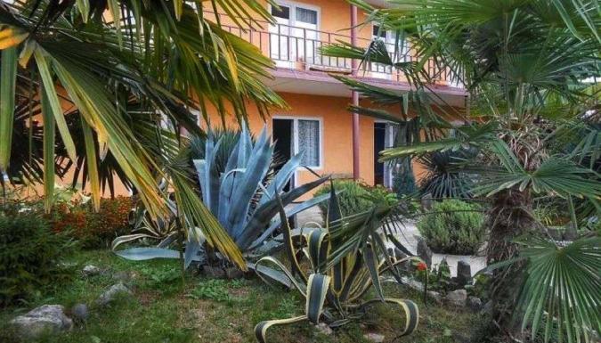 Гостевой дом расположен в 900 метрах от моря (около 15 минут ходьбы). Красивая зеленая территория с пальмами и большим каркасным БАССЕЙНОМ, есть зона барбекю, беседка, мангал бесплатно. Есть детская площадка. Оборудованная кухня, можно самостоятельно готовить. Wi-Fi – бесплатно!