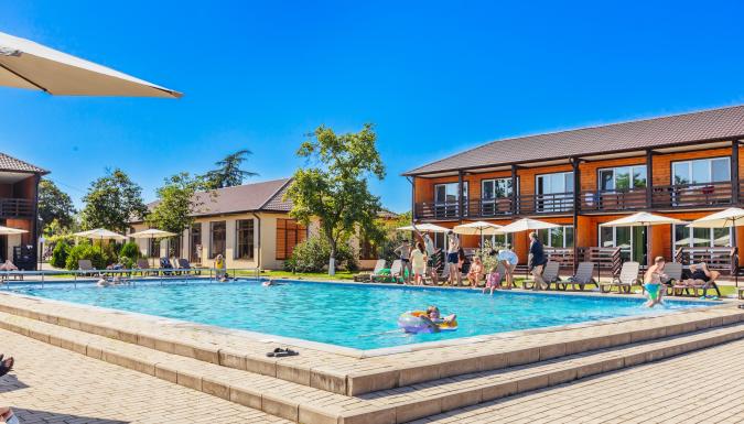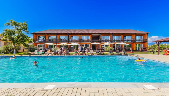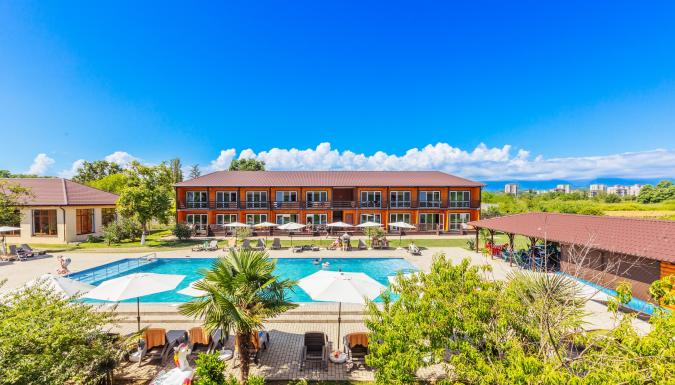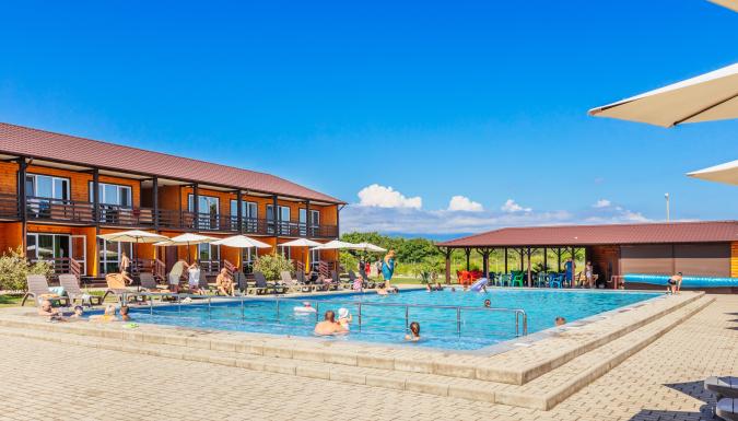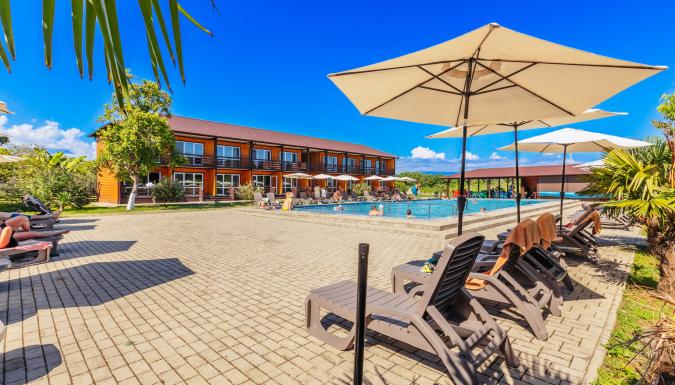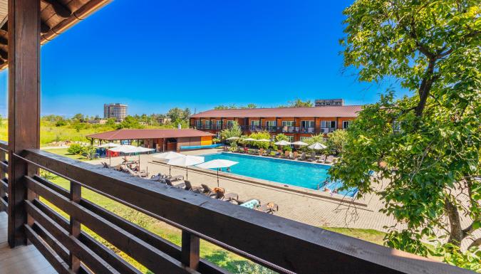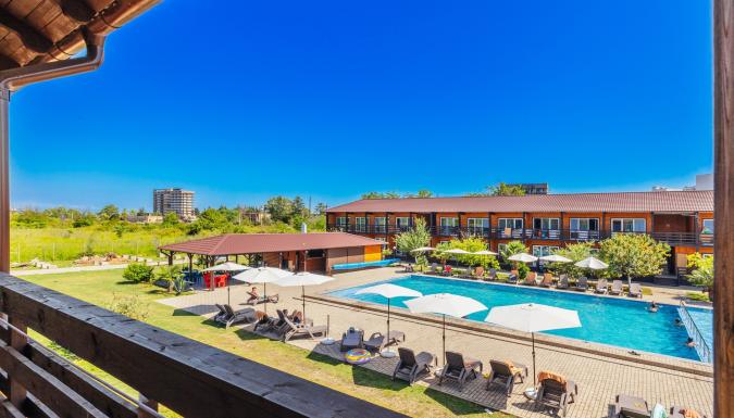 Жемчужина отеля - один из самых больших бассейнов в Абхазии с детским отсеком.