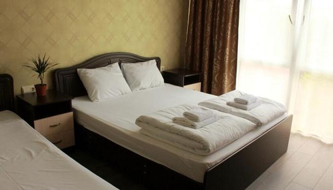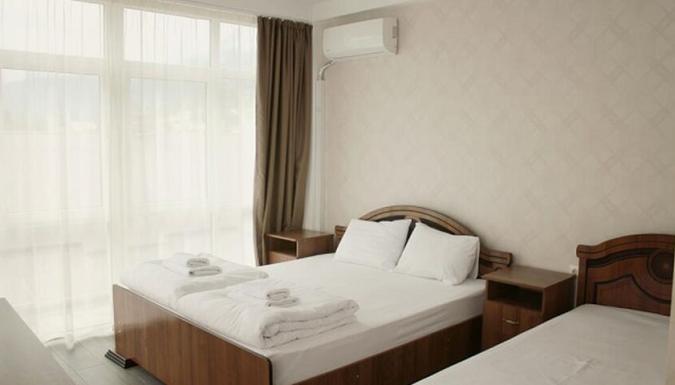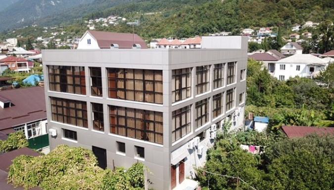 Отель расположен в районе Новой Гагры и представляет собой современное трехэтажное здание с шикарной панорамной крышей. Отличительная особенность отеля - панорамное солнцезащитное остекление с эффектным видом на окружающие красоты. Очень удобное местоположение, в самом центре города, обеспечило рядом наличие всей необходимой инфраструктуры - магазинов, кафе, ресторанов, аптек и рынка. В шаговой доступности от отеля расположена такая известная достопримечателность, как парк Славы. Для семей с детьми и любителей водных развлечений есть аквапарк.