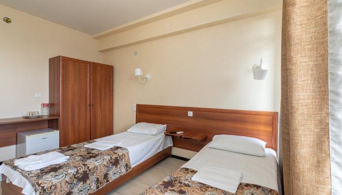 Есть номера «эконом», без ремонта и кондиционера - телевизор, холодильник, санузел и душевые на этаже.